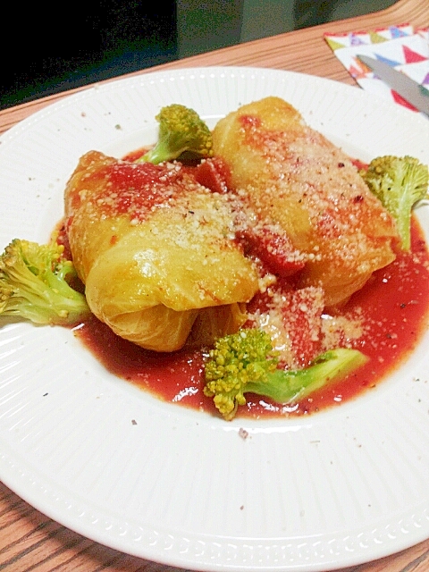 お玉一杯の残りカレー リメイクトマトロールキャベツ レシピ 作り方 By Ruyco 楽天レシピ